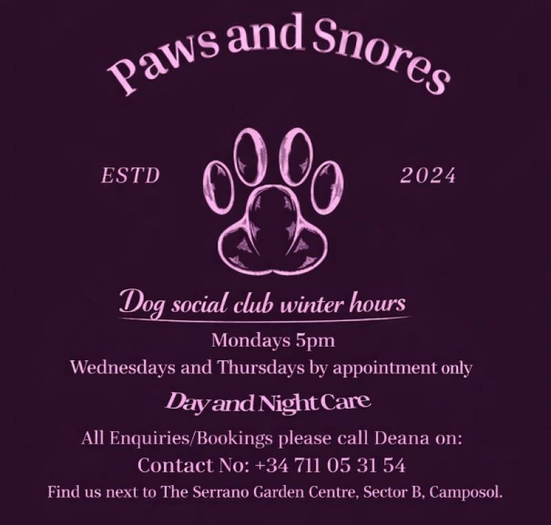 Paws and Snores dog social club returns to Camposol after the bad weatherMonday evenings in Camposol are all about muddy paws, wagging tails and a proper catch up! The dreadful weather we’ve been having recently has forced the cancellation of the always popular Monday night dog social club at Paws and Snores in Camposol.. 19/01/2026